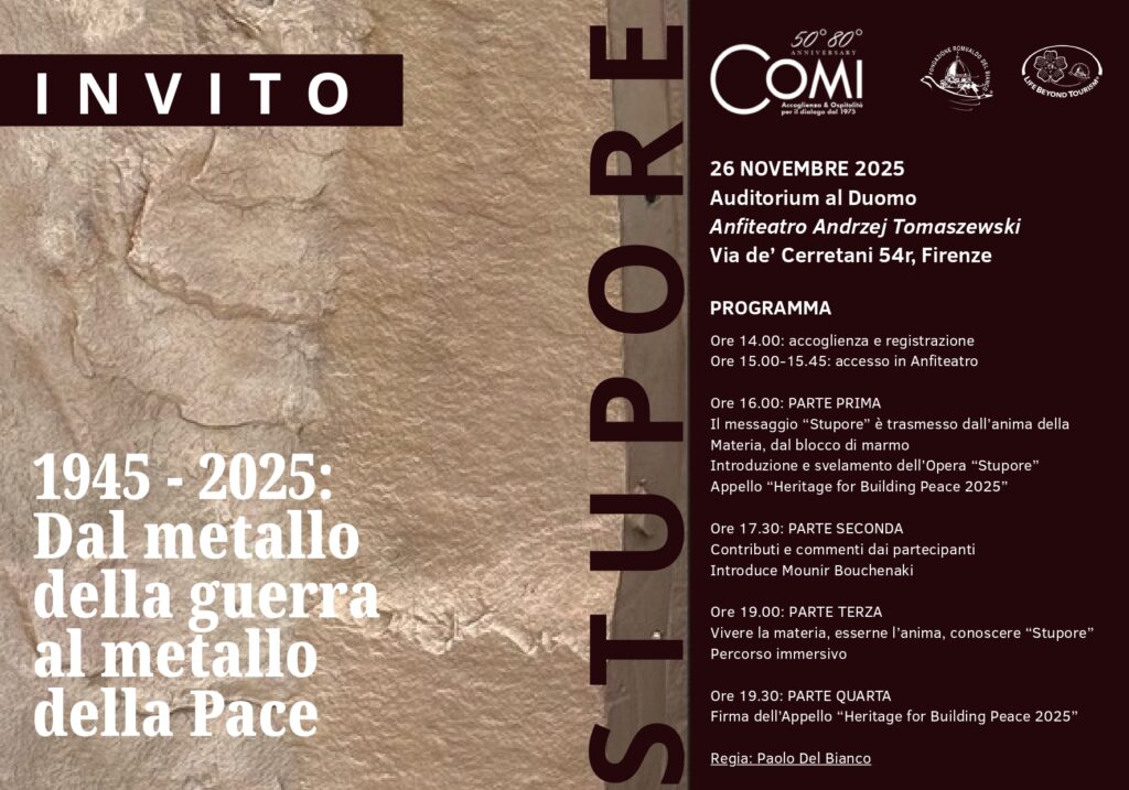 Un invito condiviso a contribuire alla pace attraverso il patrimonio Nel 2025, nel cuore di Firenze Patrimonio Mondiale UNESCO, riaffermiamo che la Pace è la
